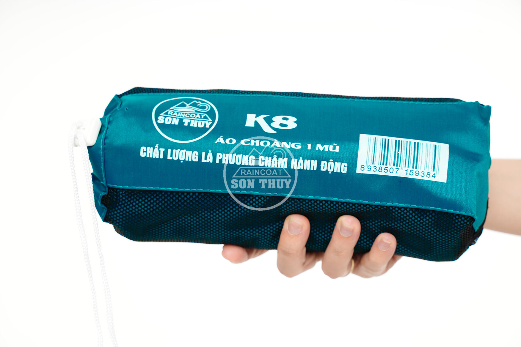 Áo mưa choàng kính K8 dành cho một người đi xe máy. Đây là một trong những sản phẩm best seller của Công ty Sơn Thủy khi mùa mưa tới.